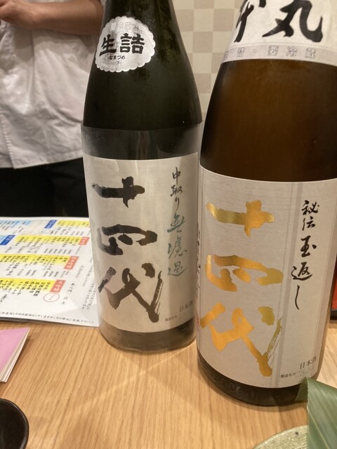 そして追加のでお酒は大将のお勧めで、蔵直の生の十四代龍の落とし子、これは今日の私の一番の好みでしたねー‼️スッキリ感と後を引く旨みがたまらない、極上のお酒でしたねー❣️
