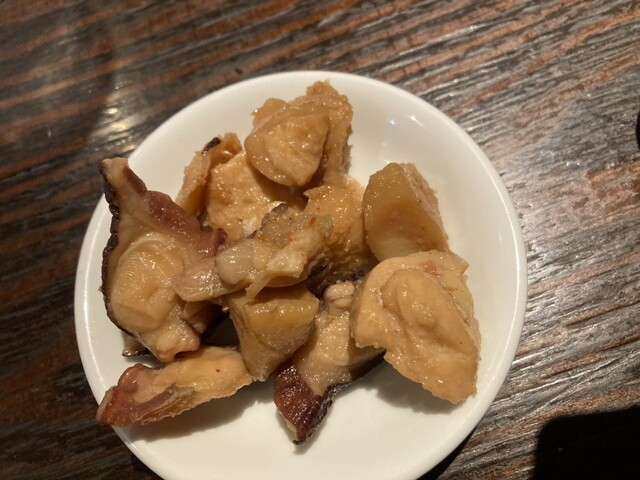 どちらも旨い、さてさておつまみは、これまた素晴らしいラインナップで、迷いましたが、取り敢えずはイノシシの生姜焼きと河豚皮ポン酢、新ジャガ烏賊の塩辛バターなどお願いしてみます。これまたどれも絶品で、酒が進む君です。