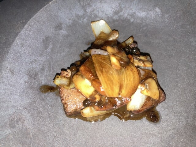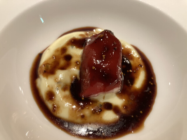 牛煮込みにラングル(フランス語で脳みそという意味があるチーズ)を乗せて合わせるお酒が初めて飲んだ若い杜氏さんの「米宗」このお酒がまたソフトな飲み口ながら旨い余韻が続く深い旨みの良いお酒で❣️