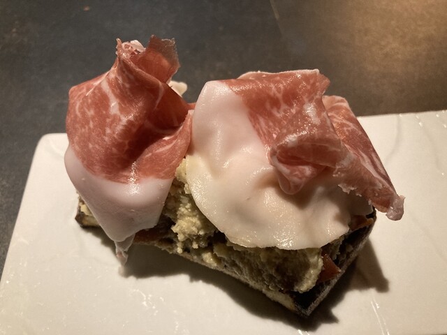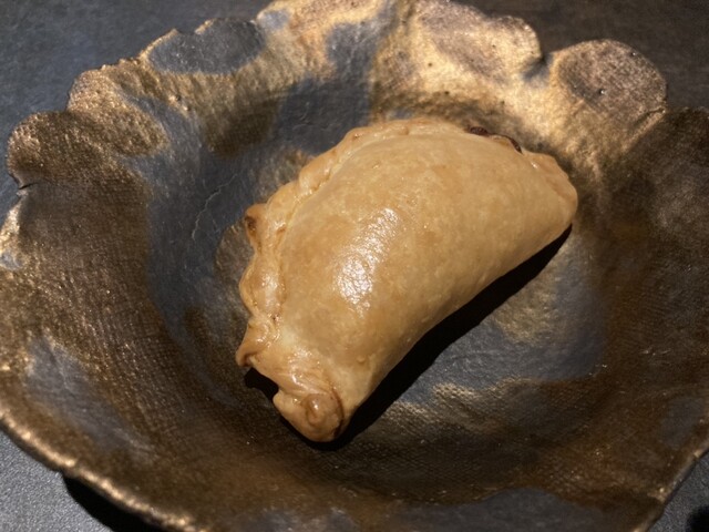 そしてつまみにはエンパナーダ、中には生ハム、枝豆、蓮根とベシャメルソースが入っています。❣️素晴らしい、揚げていないエンパナーダです。❣️もちろん馬宮さんのマリアージュもバッチリです。