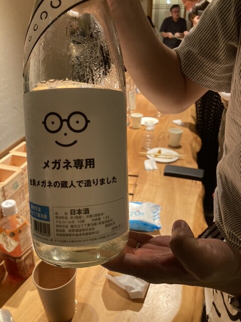 こちらでは宮城県は萩野酒造の日本酒「メガネ専用」が振る舞い酒で、追加は4号瓶3本のみの金箔入りがありました。