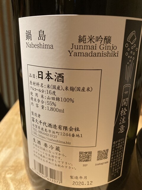 そして今日の2種類目は何と私の大好きな鍋島です。❣️山田錦純米吟醸、ピンクの文字が良いですね。やはり抜群の旨さ、さすがです。❣️