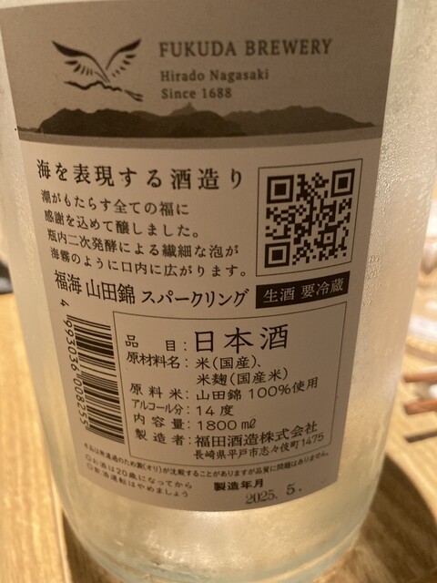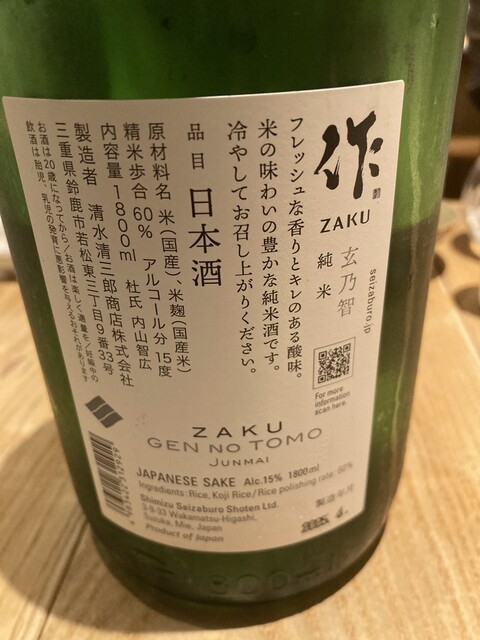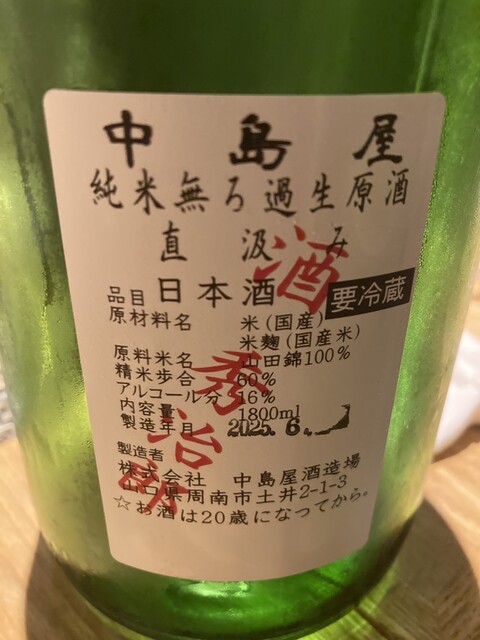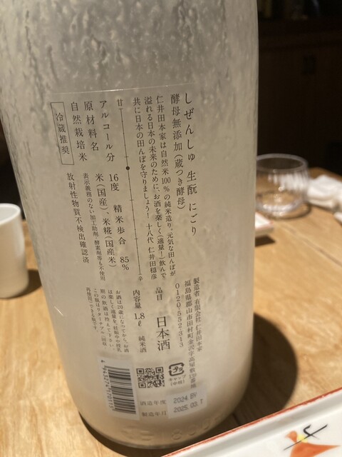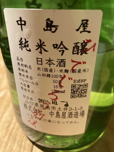 次のお酒は天美です。‼️そして季節の蕗の薹と旨いじゃがいものコロッケを挟んで、次のお酒は甲子林檎です。これまたソフトな口あたりでいい感じですね。❣️女性受けはバッチリですね‼️そのあとはYUHO PIANOですね。‼️モーツァルトを聴いて育ったお酒らしいです。これまた抜群だねー‼️そして締めは何と言っても、最近ではなかなか手に入入らない、「 而今」は山田錦の火入れです。‼️❣️‼️❣️これまた最高