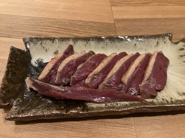 先ずは今日の目的のひとつは日本酒の日日飲み比べだったので、取り敢えず4種類を順番に頂きました。お昼も結構頂いていたので、軽く摘んで飲もうと思っていたのですが、お料理メニューを見た途端に何と食べたいものばかりで、先ずは選べません。お通しのイワシのツミレ汁とモロコとクワイの唐揚げのあとは料理長お勧めの刺身盛り合わせ、栗の唐揚げ、真鴨の網焼きを取り敢えず頂いたのですが、何と真鴨の網焼きには私の大好物の鴨のコンフィが付いてきて、これまた絶品なのです。もちろんどれも素晴らしい絶品で、ついつい追加で、ちりめん山椒、焼きフグの白子、牛ヒレカツと締めに熊五目土鍋ごはんまでお願いして、結局かなりのフルコースをいただいてしまいましたが、お腹が許せばまだまだ食べたいものばかりあって、これはまた本当にすぐリピートしたい素晴らしい内容でした。