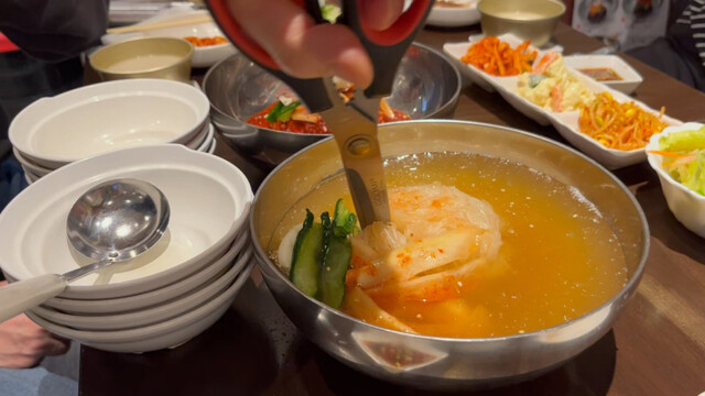 麺はスタッフが切ってくださいますクミョンの大好きな極細麺で感極まる~