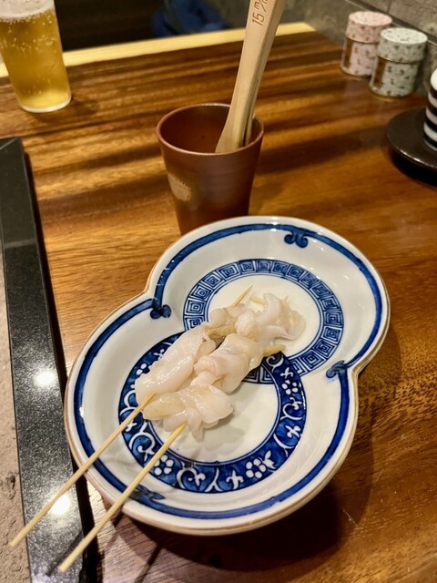 お醤油をつけながら軽く炙ります。こりこり 歯応えが良い食感です。