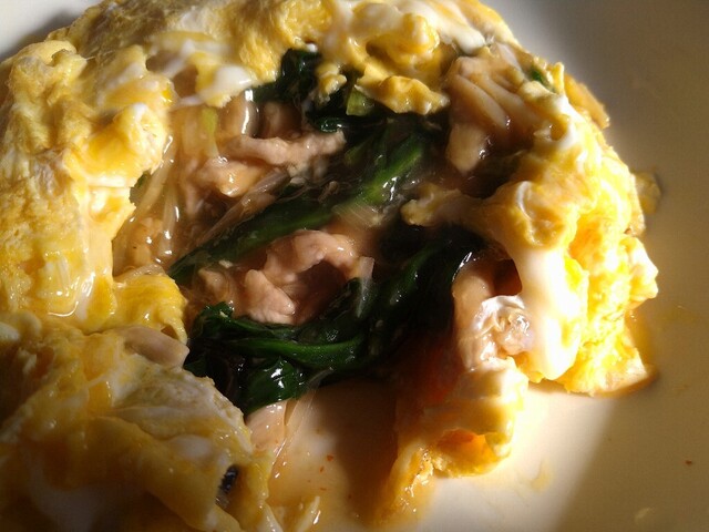 そこにあんかけを混ぜ込むと複雑な味に変化する。