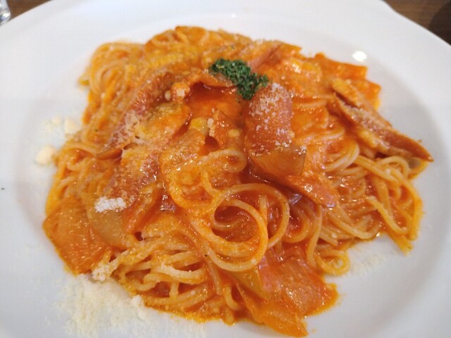ソーセージのパスタです。(ちなみにクリーム系は小エビでした)