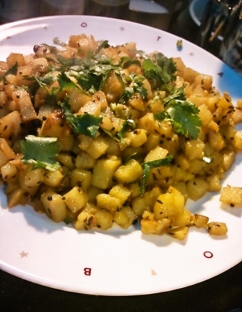 程よく歯ごたえが残ったジャガイモに、スパイスの味がほどよくしみ込んでいて美味♪