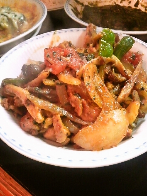 ●キノコと鶏のスパイシー炒め