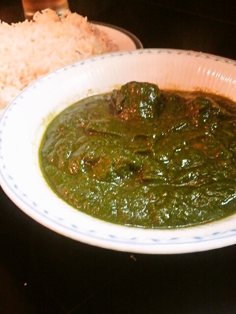 サグ(ほうれん草)とマトンを使ったカレーです。