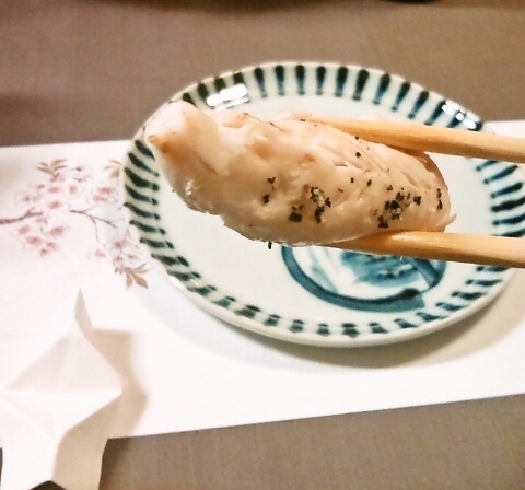 レアに焼きあがったささみはふっくらしていてとっても美味☆