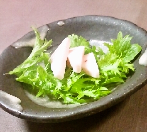 菜の花のおひたし。やさしい味付けで、少し花の開いた菜の花の味わいが楽しめました。