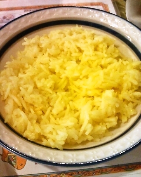 サフラン風味のライスは炊き加減も丁度良く、カレーとの相性も抜群♪
