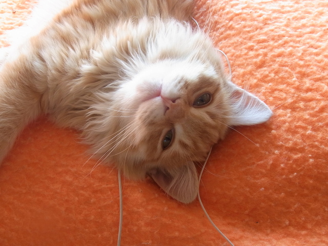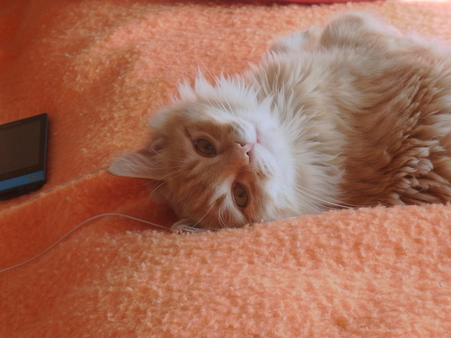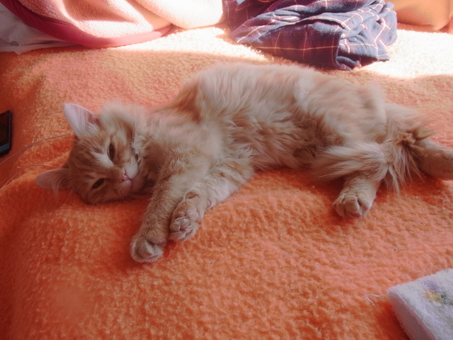暖かい部屋の毛布の上で、夢うつつな「ふーちゃん」。