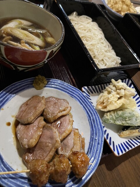 美しい更科麺に甘口の出汁、歯応え旨みがしっかりの鴨肉にお野菜の天ぷらは正にパーフェクト