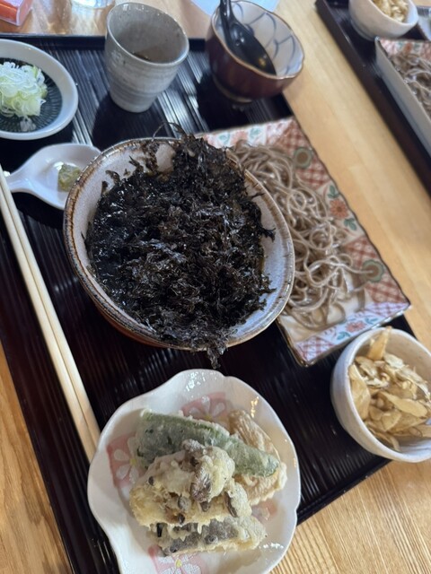 足りるかなぁと心配しましたが、蕎麦寿司ボリュームあります。追加でハーフせいろを頼む人もいるようですが、3品盛りには不要でした。