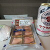 大宮駅のエキュート売店(ニューデイズ)でサクラビールとおにぎり1個とおつまみを買って新幹線車内で軽い昼食を。青森に着いてから駅そばを食べる予定だったので軽めに。期間限定ビールって大好きです。