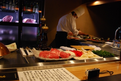 夕食は鉄板のあるレストランへ。レストランは全席禁煙です。料理は以下のようなものでした。