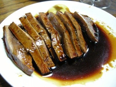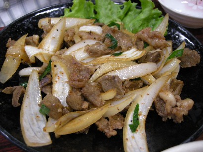 お料理は、予約してあった「レバテキ」(500円)を。そんなに大きなレバーではないのですが、周囲を焼いてあるので(カツオのタタキの周囲ぐらいの感じ)食感が良く、また、タレの味が濃厚で、かといって甘すぎず、しょっぱすぎず、このタレでご飯を食べたいぐらいの美味しさ。やまかんむりさんが「タレが美味しい」と書いていらっしゃる意味がよくわかりました。