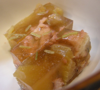 ・千本の軽い湯引きと春野菜の梅肉ジュレ