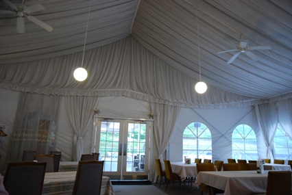 ディナーっぽい利用だからか、屋外の席か、モンゴルのパオのような大型テントの建物で冷房が効いている席か、選択できました。朝から真夏日で暑さに疲れていた私達は冷房が効いた屋内を選択。白を基調としたパオ内、白いクロス、カフェとはいえ、立派なレストランのようです。