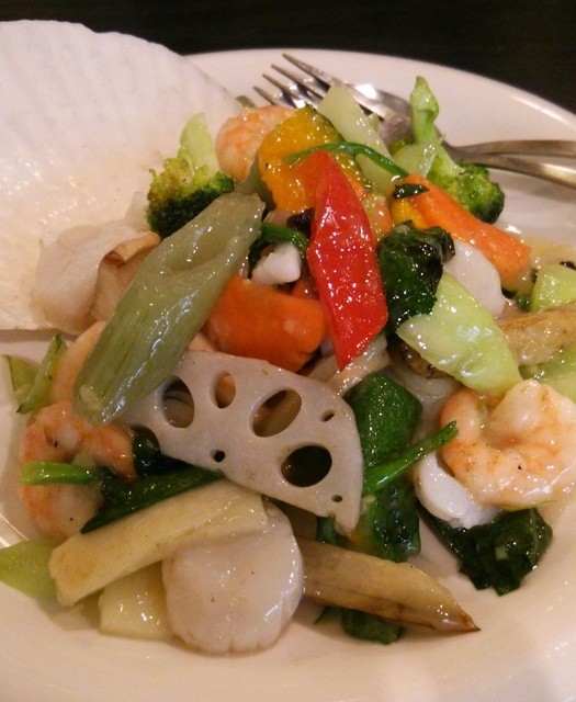 →豚肉、キャベツ、もやし、玉ねぎ、ピーマン、人参、ニラなどが入っていて味も野菜の食感も良かった。量も二人で分けて十分あるもの。