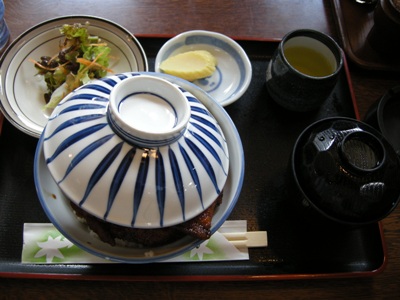 私たちはお代わりはしませんでしたが、ご飯にソースがかかっている部分を食べてみたところ、少し酸味のあるソースらしい味がしていました。が、カツにしみこんでいるソースは酸味がなく、まろやかで甘い味になっていました。想像ですが、カツのソースは、大阪でいうところの「二度浸け禁止」なソースと同じく、油で揚げたものを何度も浸けるから油の作用でまろやかになっているのではないかと。このソースと一体になったカツの味は絶妙で大いに気に入りました~。