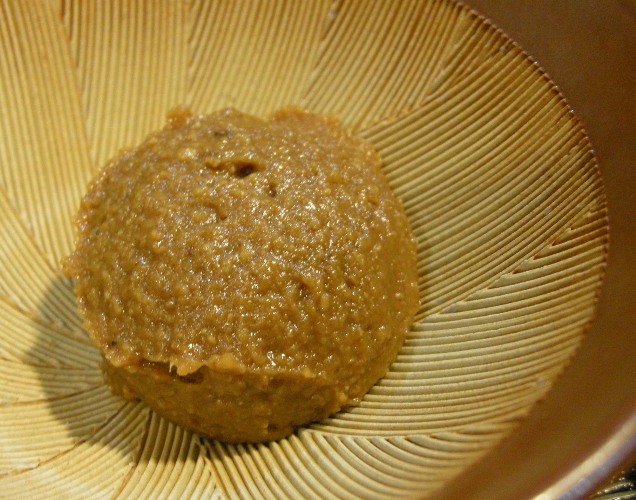 ・氷水を少しずつ擦り鉢に入れてつけ汁として食べるのに適当な濃さに薄める。