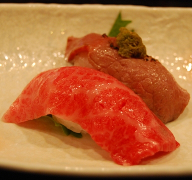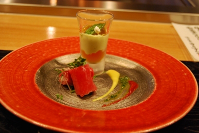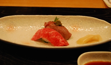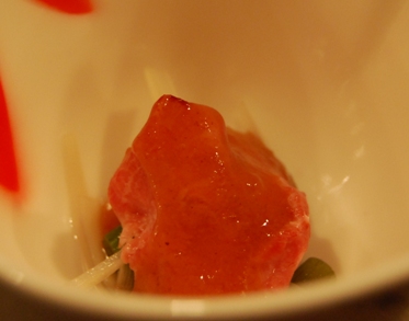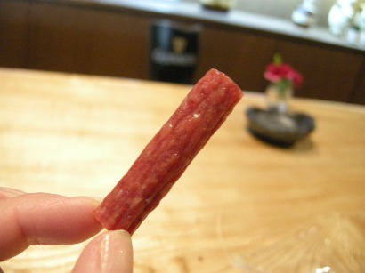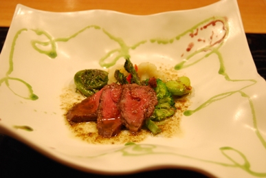 とにかく牛肉の部位で、「しきんぼ」や「まくら」や「とも三角」など、私は今までに食べたことのないような貴重な部分がいただけるだけでなく、見事に創作的に調理されていて、見た目も味も大満足です。