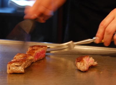 (夕食)サーロインを焼いてくれているところ
