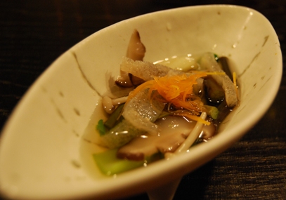 ・千本の軽い湯引きと春野菜の梅肉ジュレ