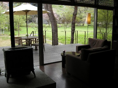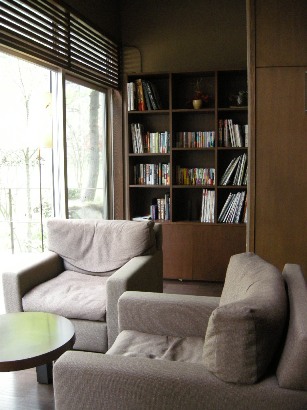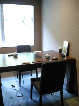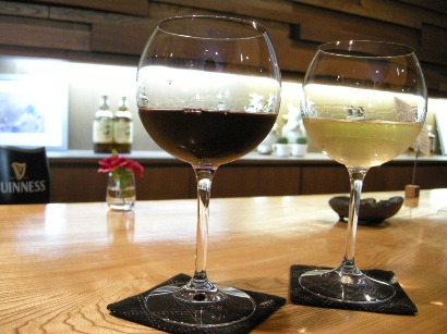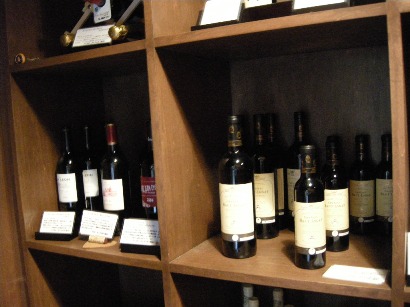 館内を散策しようと夫を誘い、ロビーラウンジの一角にある酒蔵へ。シャンパン、ワイン、焼酎、日本酒など、厳選されたものが貯蔵されており、見るだけでワクワクします。それぞれにラミネート加工されたカードが備え付けられており、それをバーに持参するか夕食時にレストランに持参するとグラスもしくはボトルで飲むことができるそうです。コレクションの中に高畠ワインを発見!高畠ワインとは、山形のワイナリーで、東京中野区にあるワインが主力商品の酒屋さんの奥のバープチコニシさんで2009/2/14にワイナリーのオーナーをお招きしてのセミナーが開催されたほど定評のあるところ。赤と白とそれぞれ1杯ずつバーで飲むことにしました。