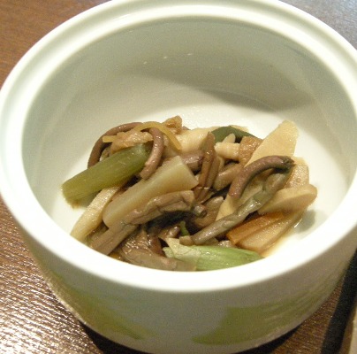 (夕食)とも三角をすみれ漬にして