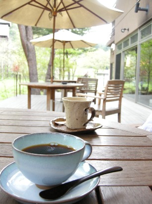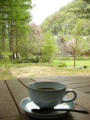 (朝食)食後のコーヒーはテラスに出てみました