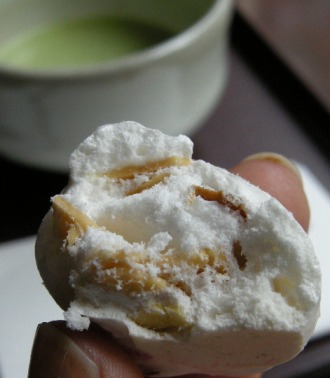 お着き菓子はアーモンド入りのメレンゲで作ったようなお菓子でした。