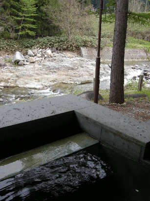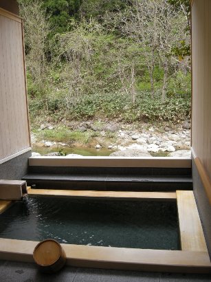 この宿は部屋風呂はありませんが、男女別の大浴場(夕食時に男女交代)が各1つずつと、貸切露天風呂が2つありました。貸切露天風呂はシャンプーやボディーソープを使えない仕組みにしてあり、源泉かけ流しの温泉を楽しめるようになっていました。温泉好きな私の個人的意見では、こういう方式はありがたく、好感が持てます。どうしてもシャンプーやボディーソープの匂いが温泉の微妙な香りを消してしまうことがあるので。洗うところと温泉を楽しむところが分かれているのは嬉しいです。貸切露天風呂は予約不要で無料。空いていれば札を裏返して、内鍵をかけて利用するという仕組み。バスタオルとタオルは大浴場、貸切露天とも、部屋に置いてあるものを持参する方式です。