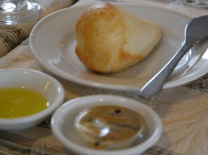 ここで、メニューにはないけれど、とサービスで1品出していただいたのは、「椎茸とパンチェッタのオリーブオイル焼」。柚子胡椒が少量ずつ添えられていてちょっぴり和風な風味も感じます。この椎茸も園生が原木を1本ずつ丘の頂上付近まで運んで丁寧に育てたもので、小ぶりなのですが、旨みがぎゅっと詰まった味。美味しかったので自宅用に生椎茸、実家用に干し椎茸を翌朝買って帰りました。「甲州F.O.S.」との相性もバッチリ♪