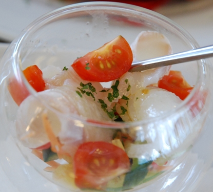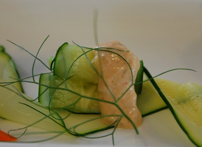 (前菜アップ)ズッキーニの盛り付けが素敵です。