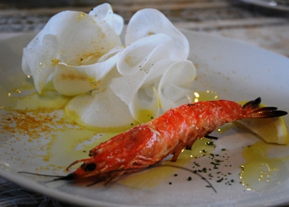 料理:天使のエビの塩焼き ボッタルガの大根サラダ添え