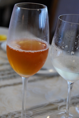 →少し色のついた珍しい白ワインで、個性的な味なので好き好きがあるとのこと。F.O.S.とは、ファーメンテッドオンスキンズの頭文字で、赤ワインをつくるように皮と共に発酵させたものだそう。私は結構好きな風味でした♪