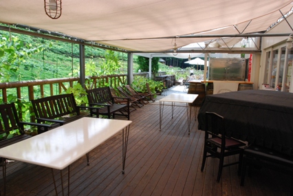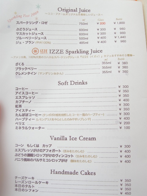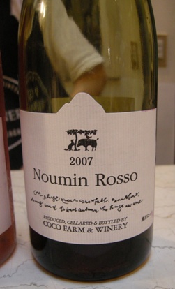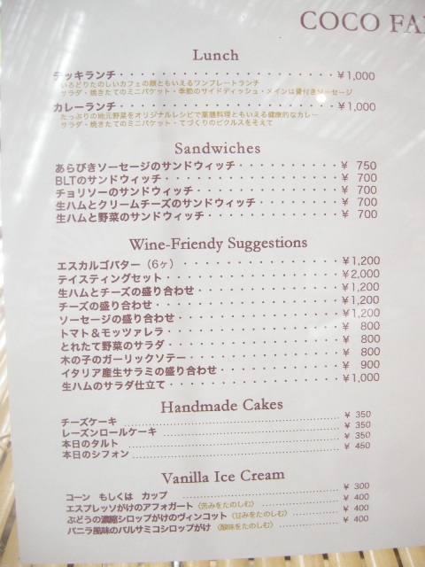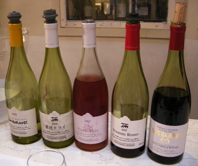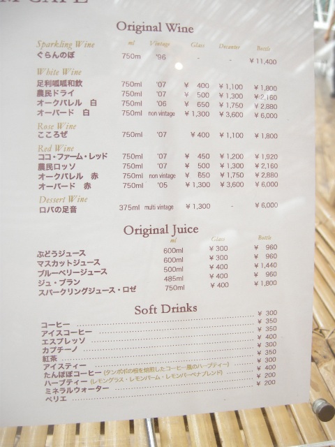 次は500円の試飲コーナーでおつまみ&5種類の試飲をし、カフェへ。今回試飲した銘柄は、足利呱呱和飲(あしかがここわいん)(白)、農民ドライ(白)、2007こころぜ(ロゼ)、2007農民ロッソ(赤)、2007オークバレル(赤) でした。