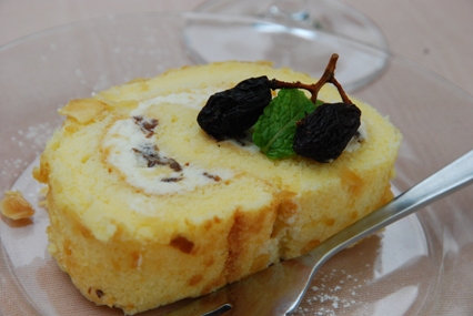 私はアイスコーヒーと「ぶどうのロールケーキ」を。