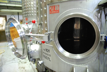 (見学コース)これは安価なタイプのワイン用の貯蔵タンク