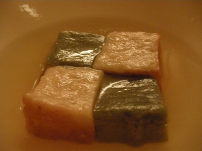 「生麩」:市松模様に盛られていて見た目に感激!