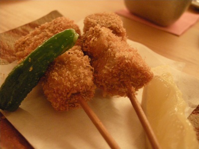 「まぐろ串カツ」おろし玉ねぎと合わせたソースが素晴らしくてソース皿を舐める勢いで食べた。