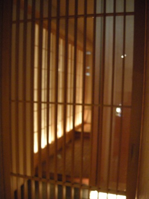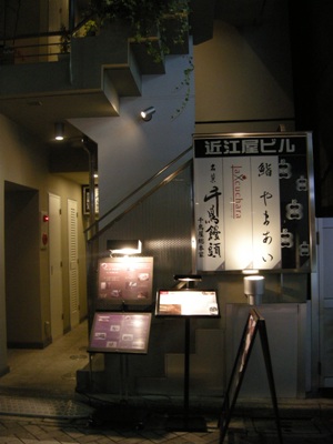エレベーターで4Fへ。ワンフロア1軒の入居ですが、外側エレベーターといいますか、小規模なビルならではの作りで、エレベーターを降りると左には外階段があり、プチ高所恐怖症な私はちょいと怖い。オシャレな木の格子戸を開けると、いらっしゃいませの掛け声。