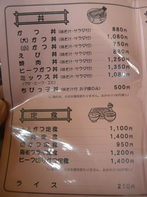 ご飯の大盛り・小盛りは同一料金。ただし、お代わりでご飯を頼むと100円です。このお代わりご飯、隣のテーブルの人が頼んでいましたが、ご飯にソースがかかっているものが供されていました。