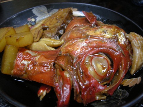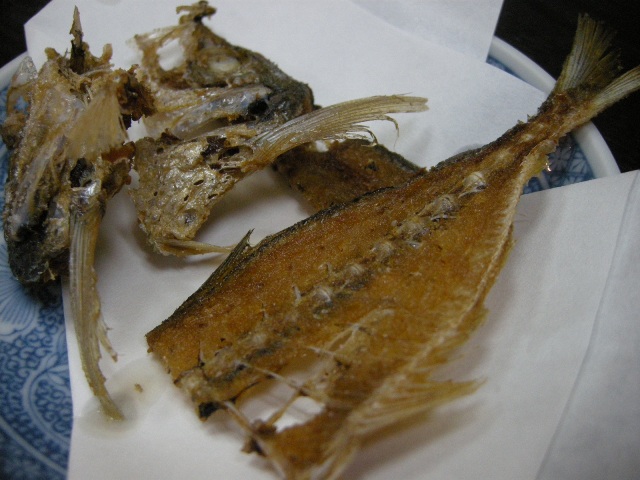 →まずは牛蒡何本か添えられているのが嬉しいです。煮汁は濃い目の味付けで、砂糖を効かせてあるのが好みに合うし、骨からの身離れがいいのは新鮮な証拠だろうと想像します。この煮汁をご飯にかけて食べたいぐらいでした。