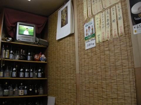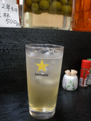 ここで飲み物、夫は「レモンサワー」(370円)、私は「梅酒サワー」を注文。どちらも甘さ控えめの大人っぽい味。この店のサワーは好みだな。特に「梅酒サワー」は、あっさりした杏露酒のような風味があり、気に入りました。